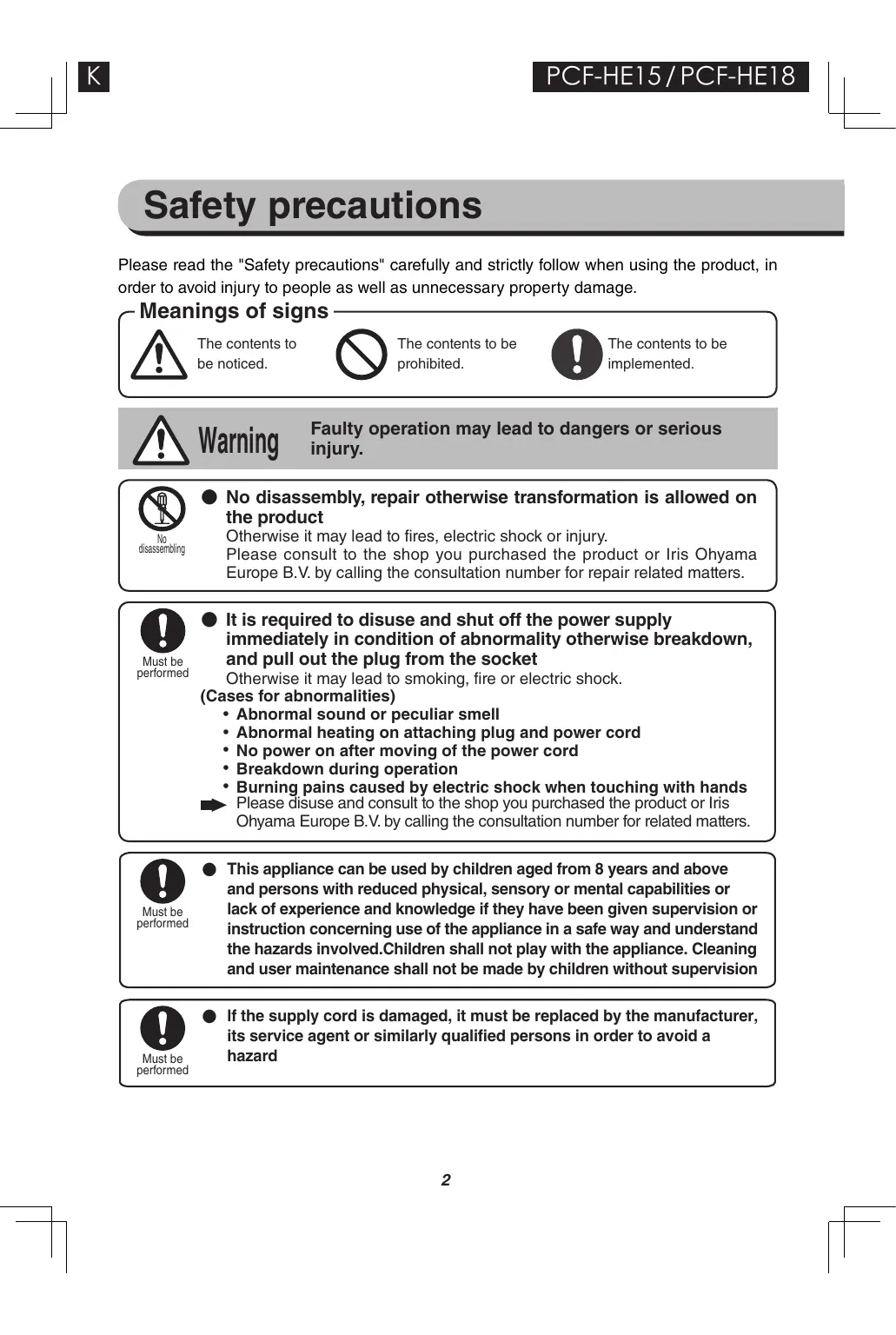 Avertissements l'utilisation et consulter le magasin où vous l'achetez ou le centre de service clientèle Iris Ohyama Europe B.V.