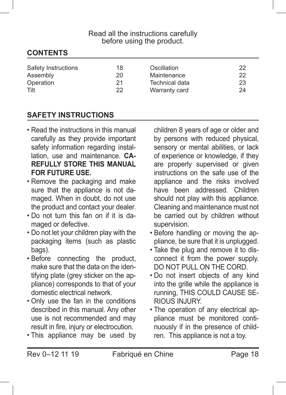 * Ne pas retirer la grille avant pour les opérations de nettoyage. S'assurer que le ventilateur est déconnecté du réseau avant toute opération d’en- tretien.