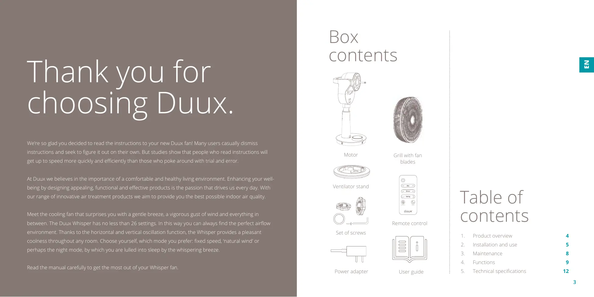 USER MANUAL WHISPER DUUX