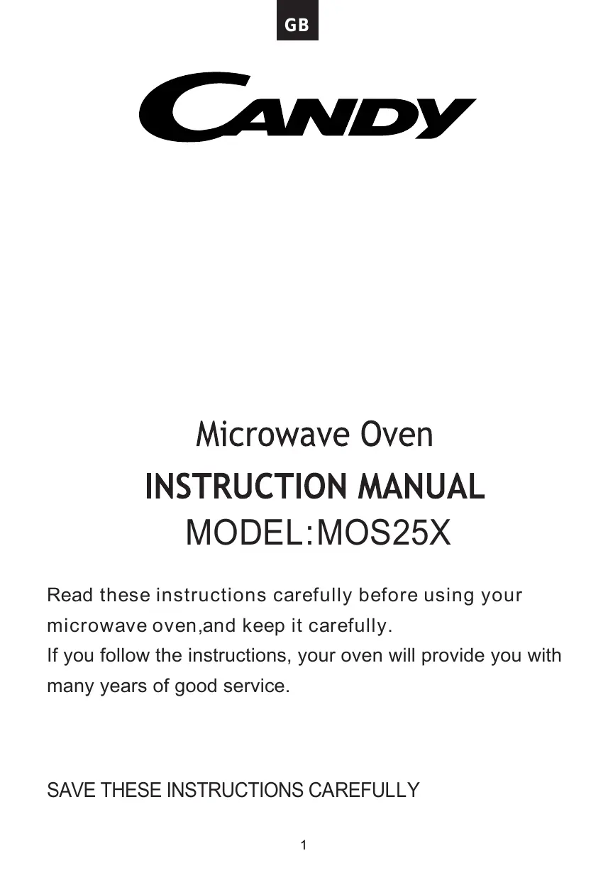 MOS25X - Micro-ondes CANDY - Free user manual and instructions