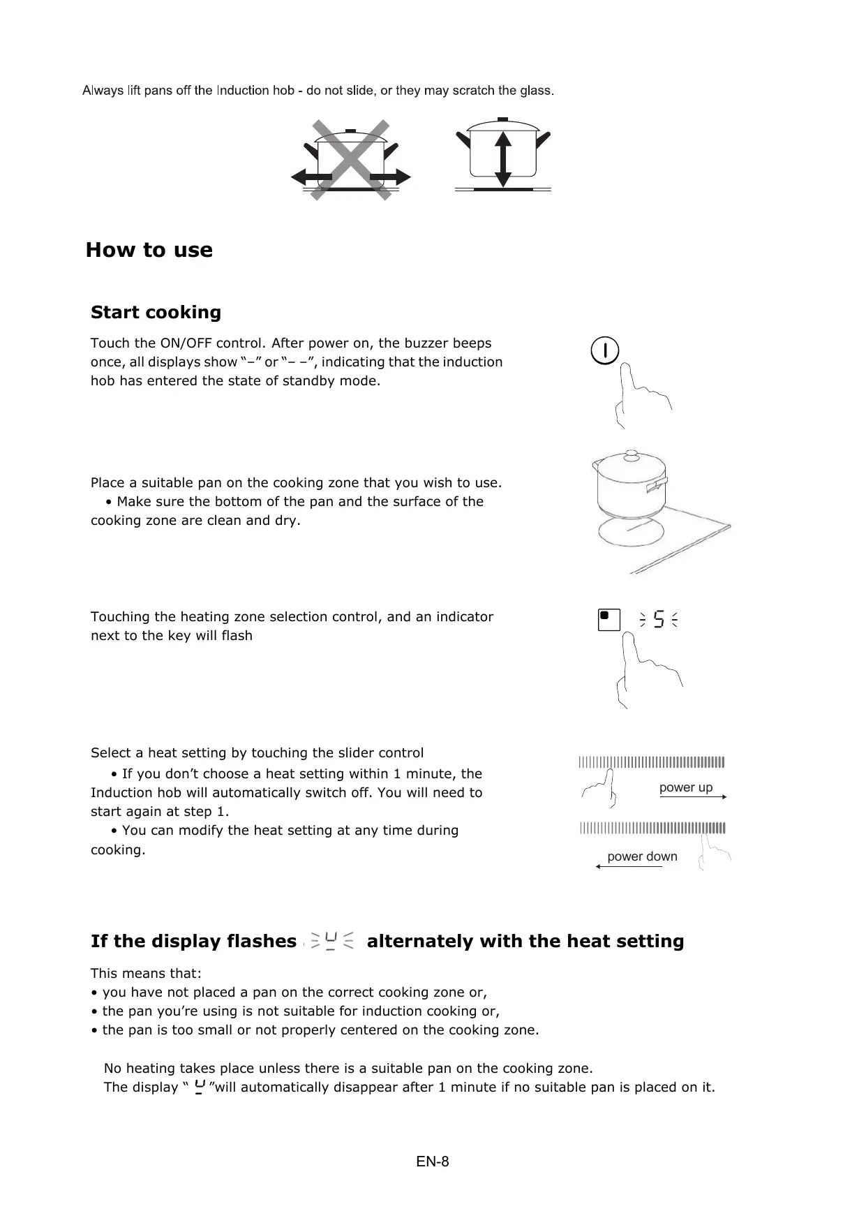 e Si vous ne choisissez pas un réglage de chaleur dans la N augmenter ; minute qui suit, la plaque à induction s'éteindra automatiquement.