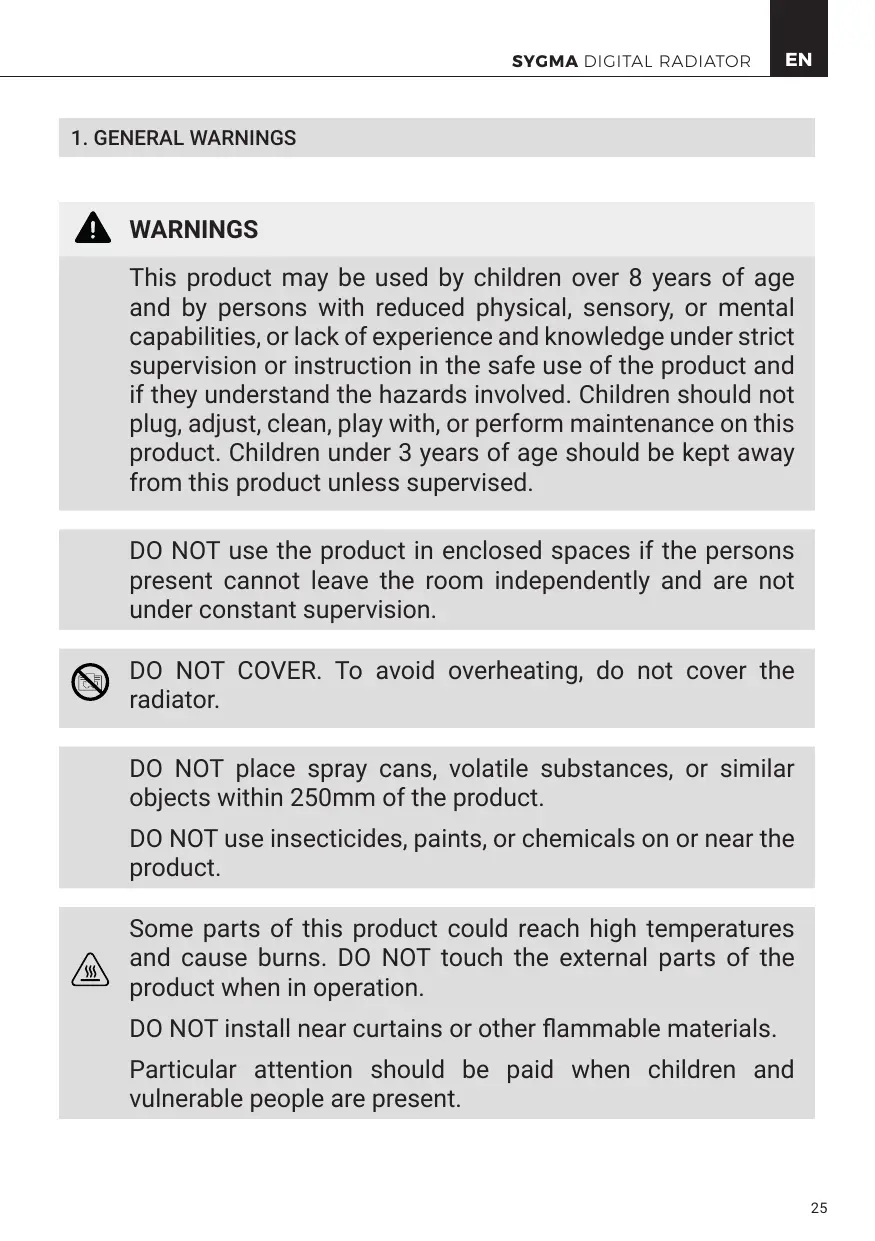 DO NOT use the product in enclosed spaces if the persons present cannot leave the room independently and are not under constant supervision.