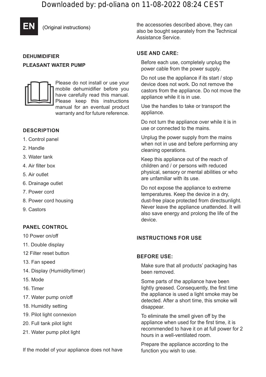 Download the instructions for your Déshumidificateur in PDF format for free! Find your manual DH300 - TAURUS and take your electronic device back in hand. On this page are published all the documents necessary for the use of your device. DH300 by TAURUS.
