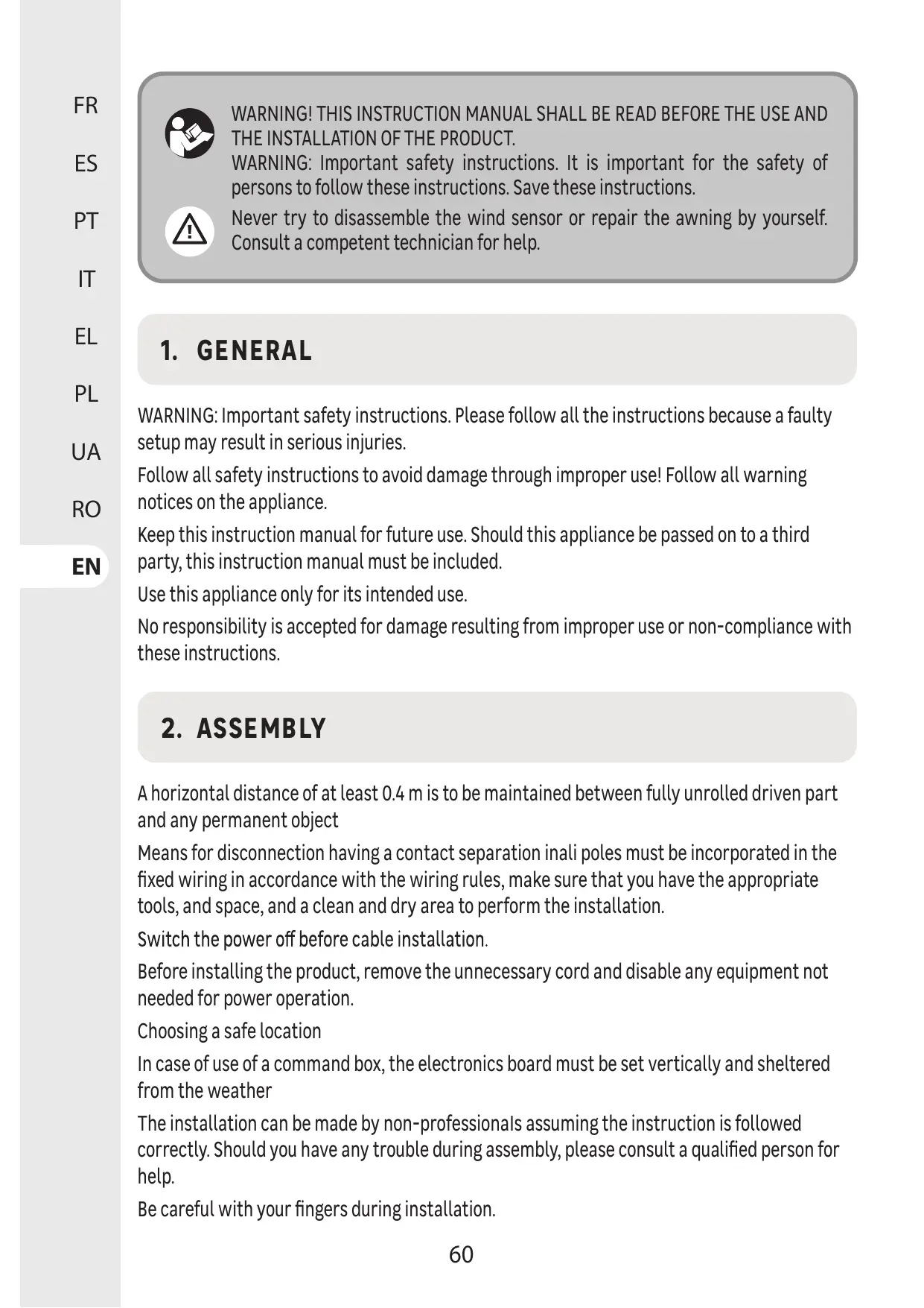L'installation peut être effectuée par des personnes non professionnelles à condition que les instructions soient correctement suivies. En cas de problème au cours de l'assemblage du store, veuillez faire appel à une personne qualifiée pour obtenir de l'assistance.