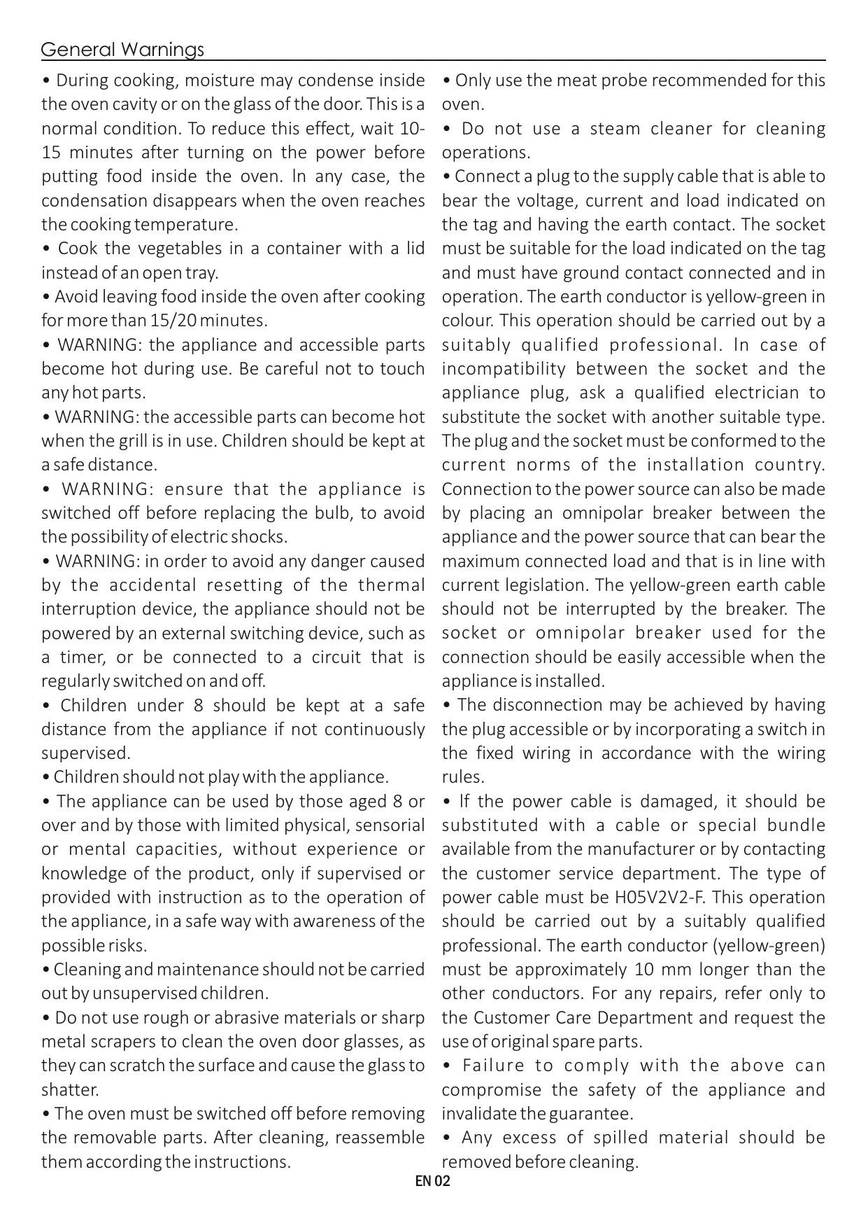 L'alimentation électrique à laquelle le four est connecté doit être conforme aux lois en vigueur dans le pays d'installation. Le fabricant décline toute responsabilité pour tout dommage causé par le non respect de ces instructions