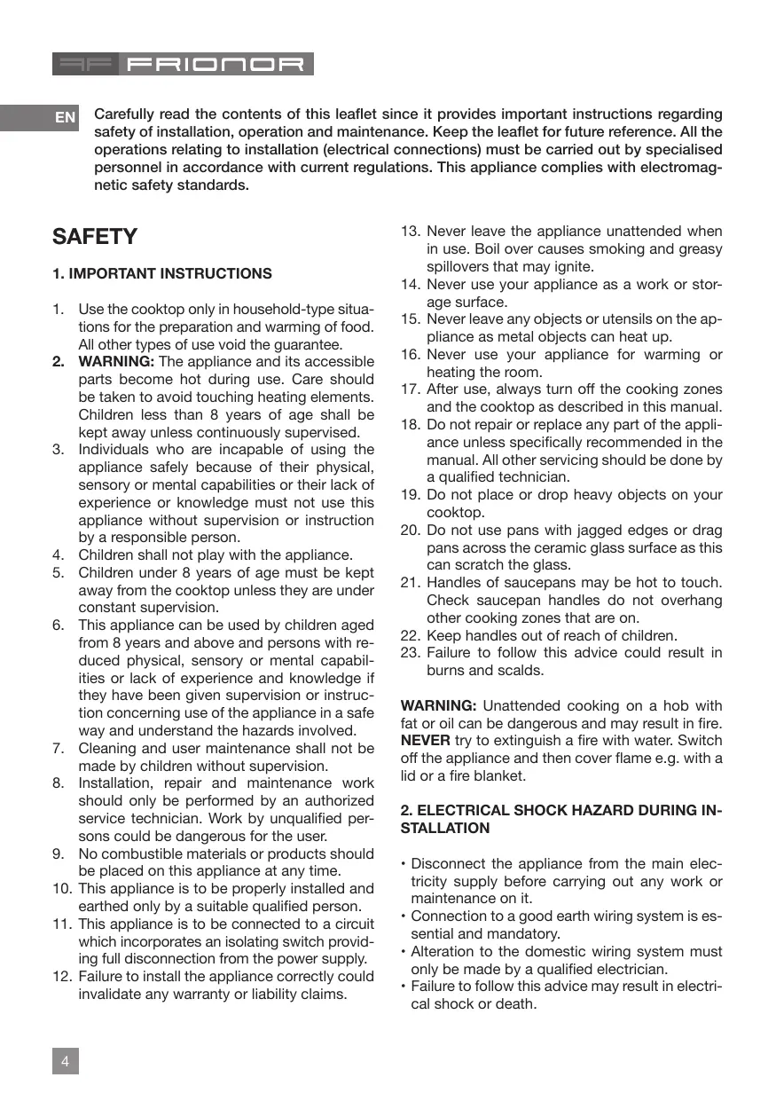 DVM29 - Plaque vitrocéramique FRIONOR - Free user manual and instructions