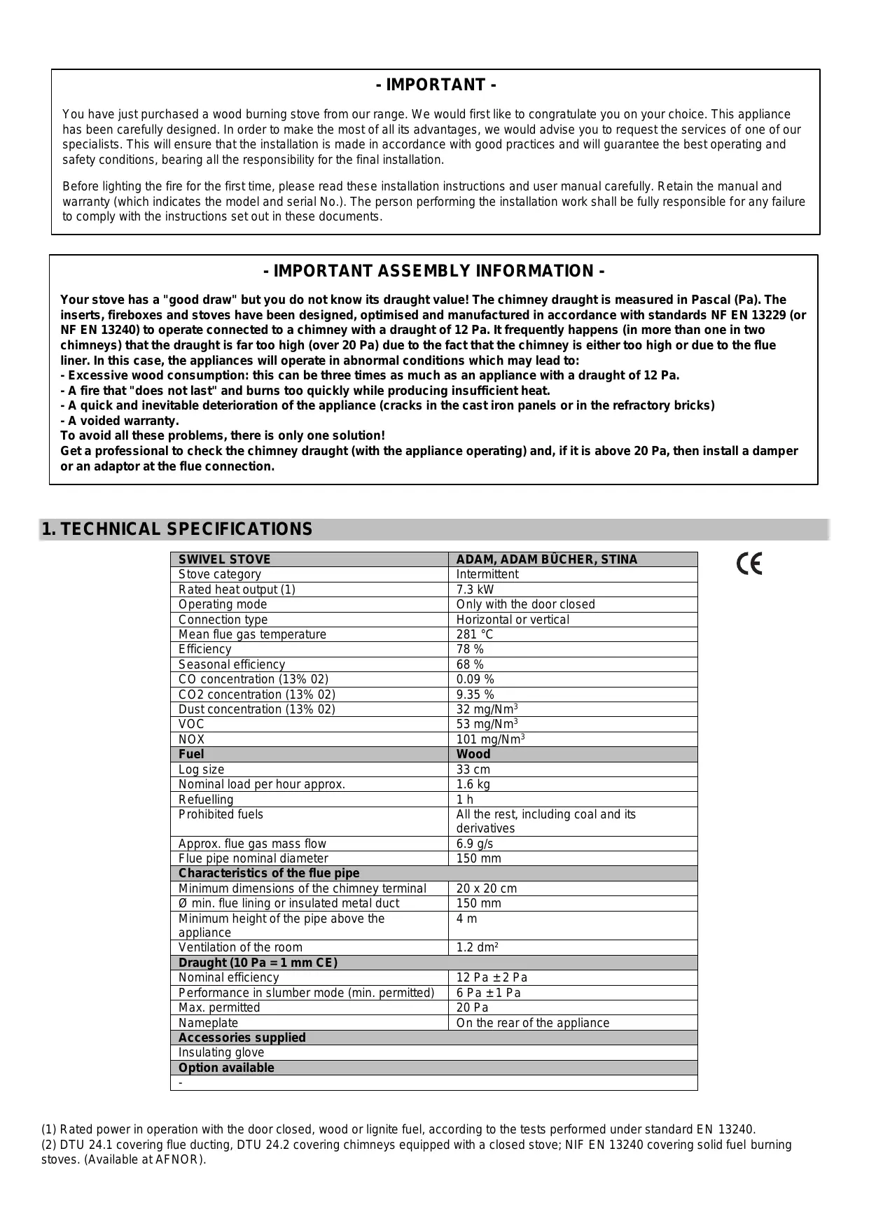 Download the instructions for your Poêle à bois in PDF format for free! Find your manual ADAM - SUPRA and take your electronic device back in hand. On this page are published all the documents necessary for the use of your device. ADAM by SUPRA.