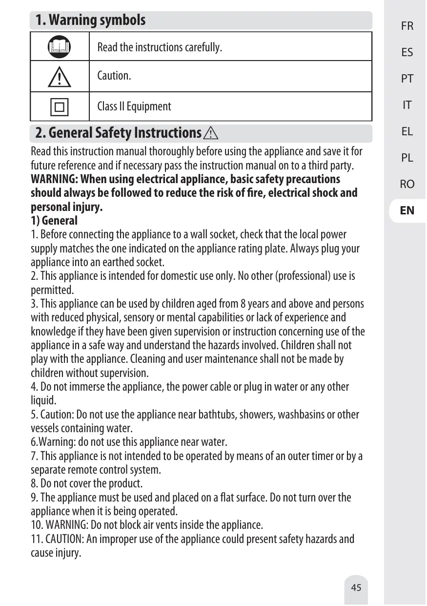 2.Cet appareil est uniquement destiné à un usage domestique. Aucun autre usage (par exemple professionnel) n'est autorisé.