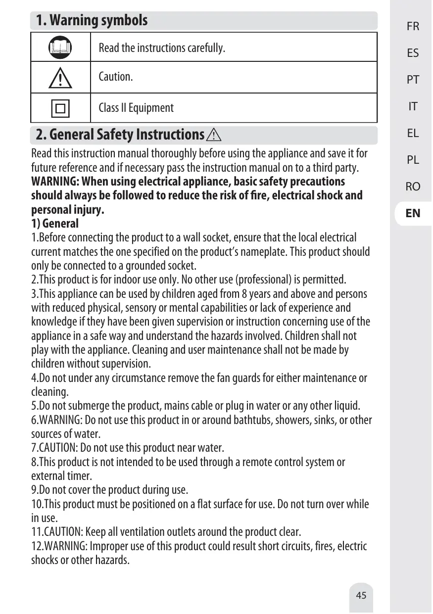 4.Ne retirez en aucun cas les grilles du ventilateur, aussi bien pour effectuer une opération d'entretien que de nettoyage.