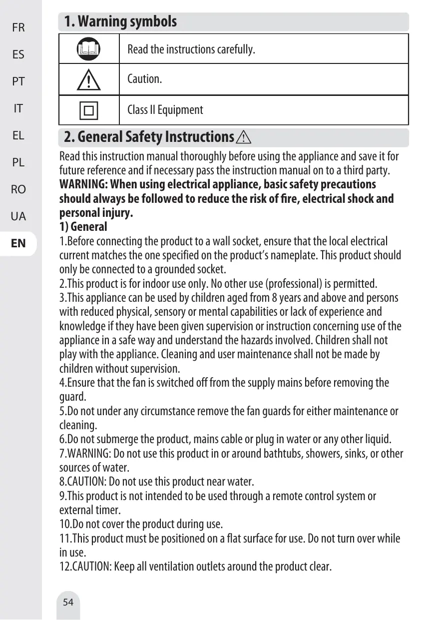 14.MISE EN GARDE : Évitez tout contact avec des pièces mobiles. N'insérez jamais vos doigts, toute autre partie du corps ou tout objet à travers la grille du ventilateur. Les adultes doivent faire particulièrement attention lorsqu'ils utilisent ce ventilateur à proximité des enfants.