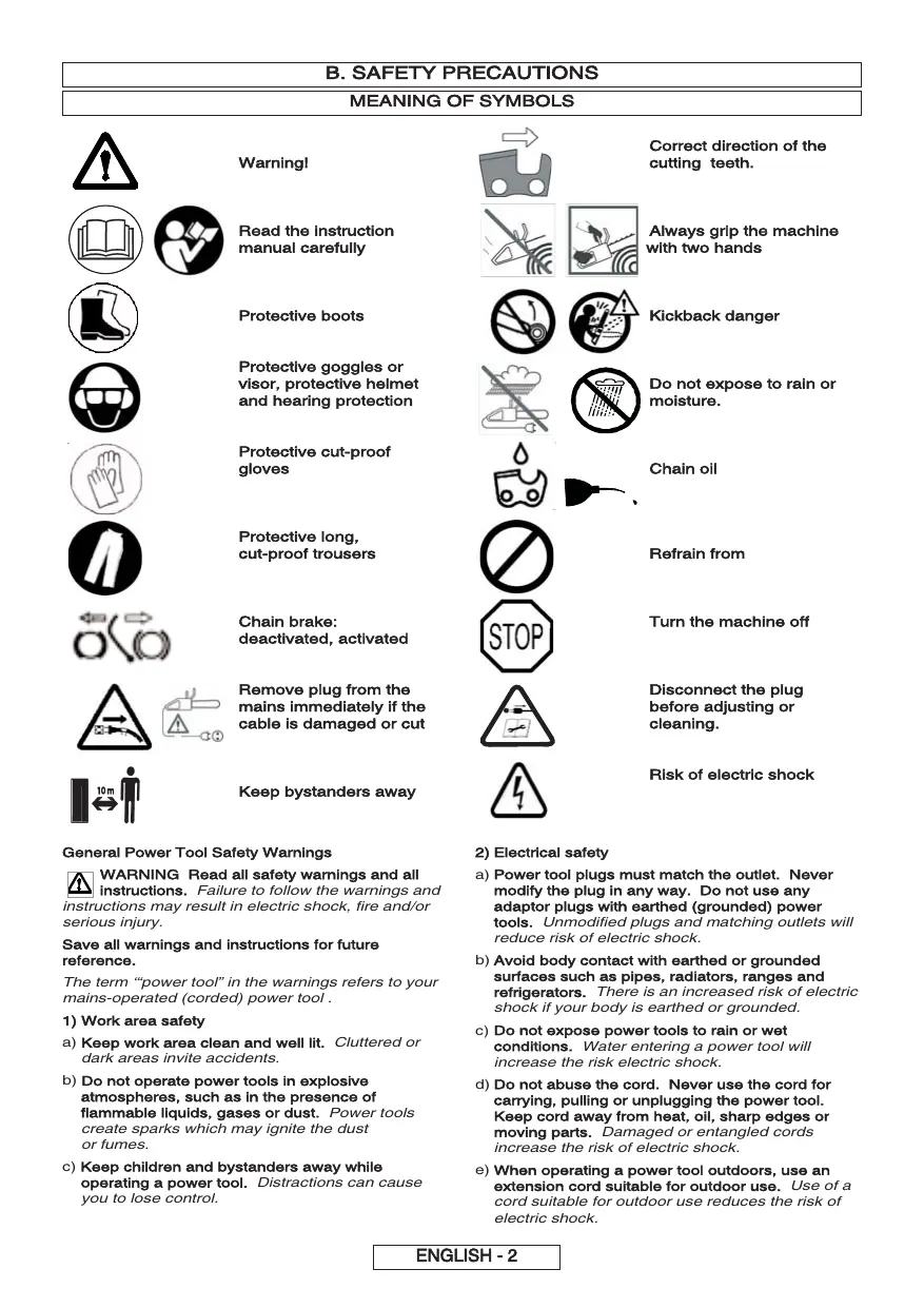FRANÇAIS Suivre les instructions concemant le graissage, la tension de chaîne et le remplacement des accessoires. Une chaine incorrectement tendue ou lubrifiée peut soit se casser ou augmenter le risque de retour en arrière.
