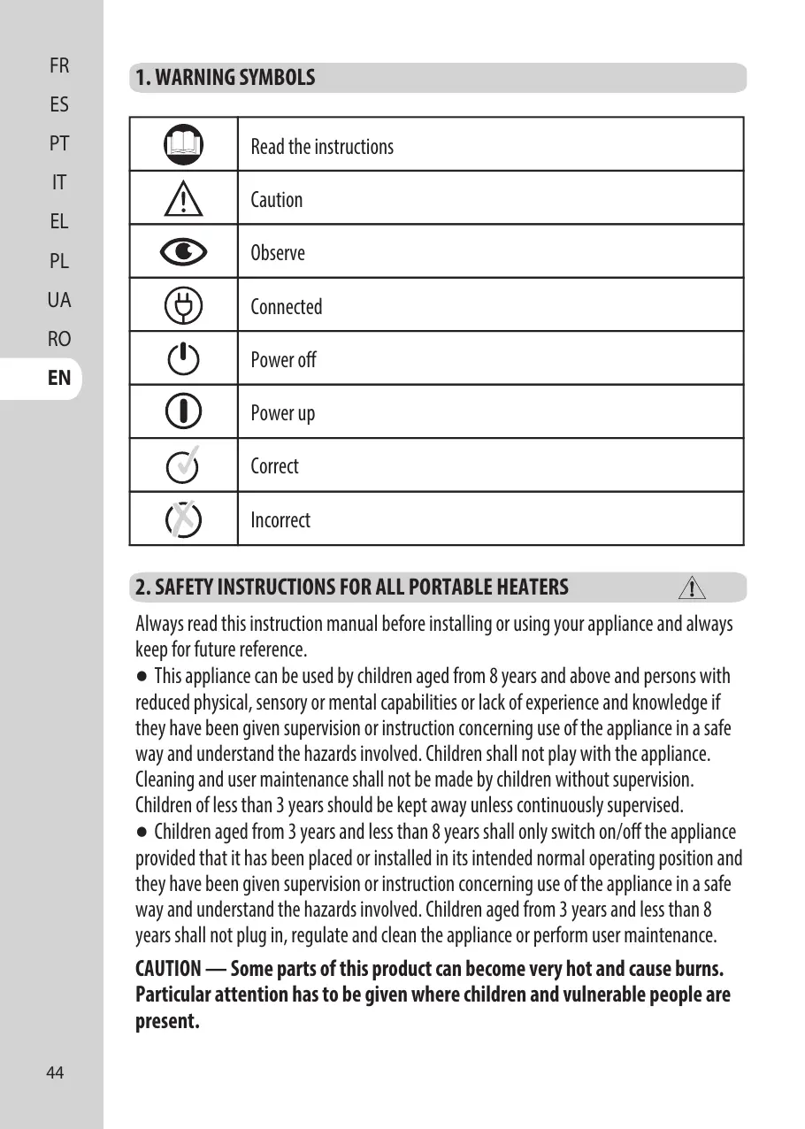 ATTENTION - Certaines parties de ce produit peuvent devenir très chaudes et provoquer des brûlures. Il faut prêter une attention particulière en présence d'enfants et de personnes vulnérables.