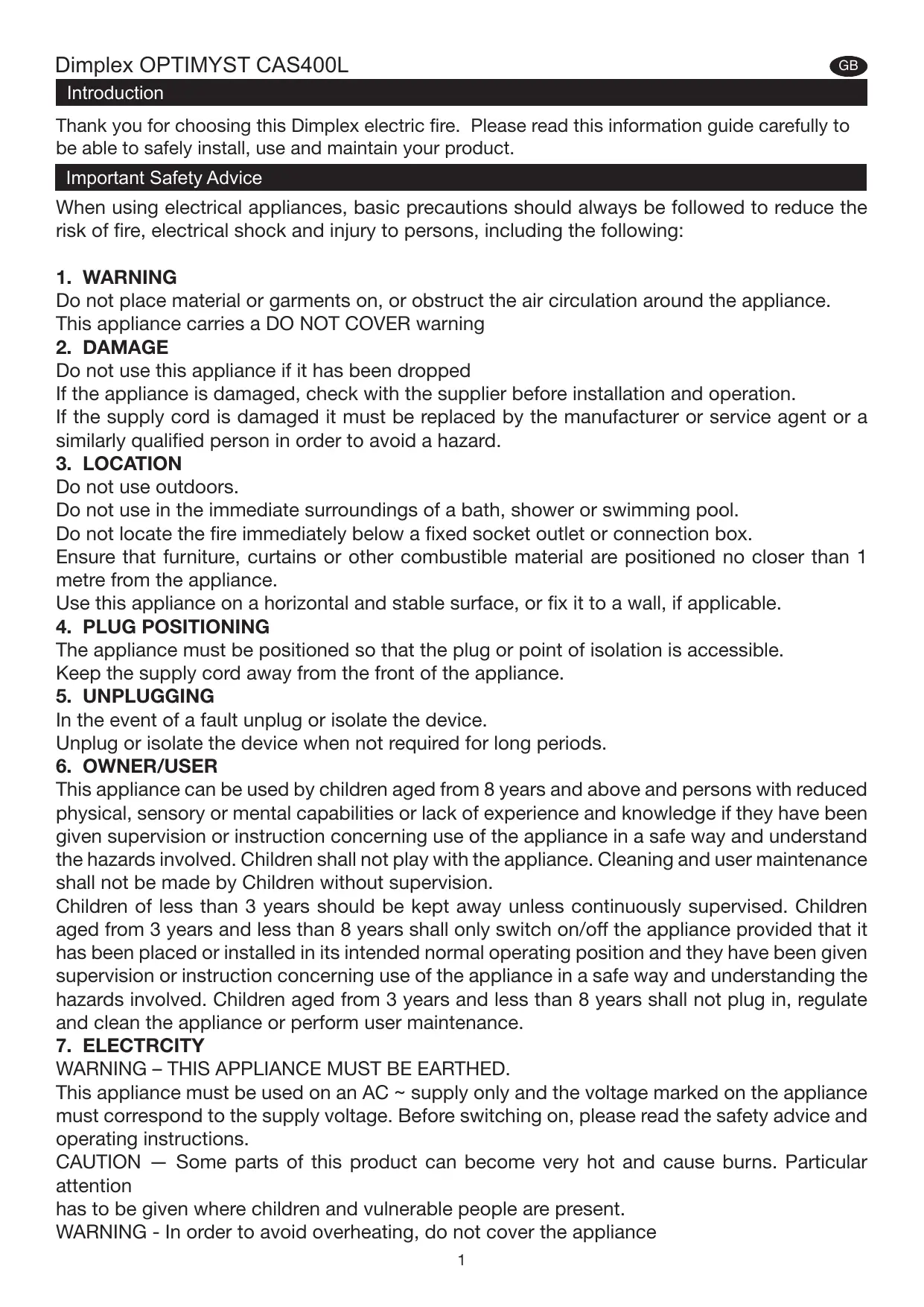 USER MANUAL CASSETTE DIMPLEX 400 LED DIMPLEX