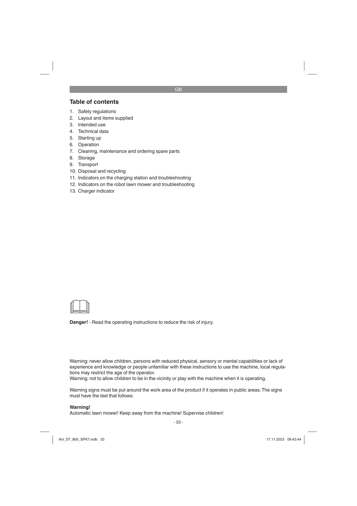 Avertissement! Tondeuse à gazon automatique!