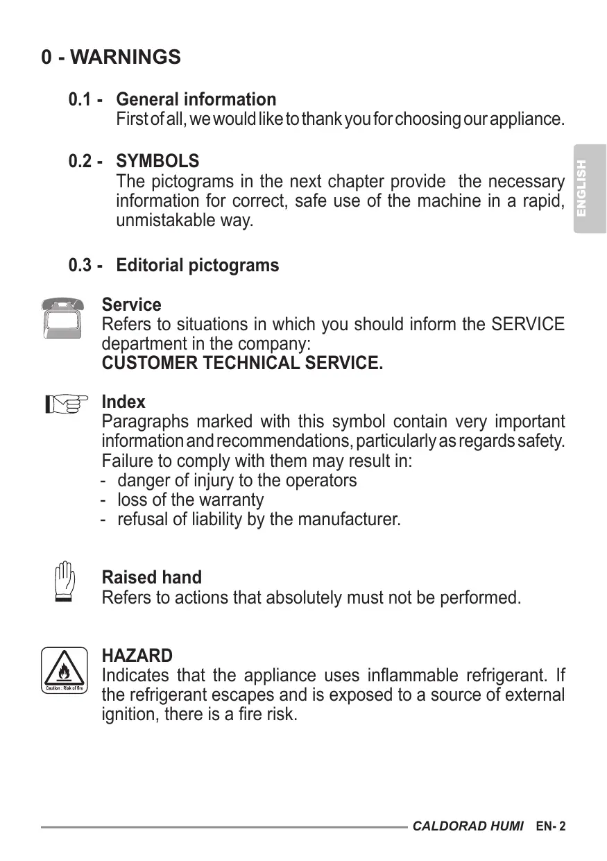 USER MANUAL CALDORAD HUMI OLIMPIA SPLENDID