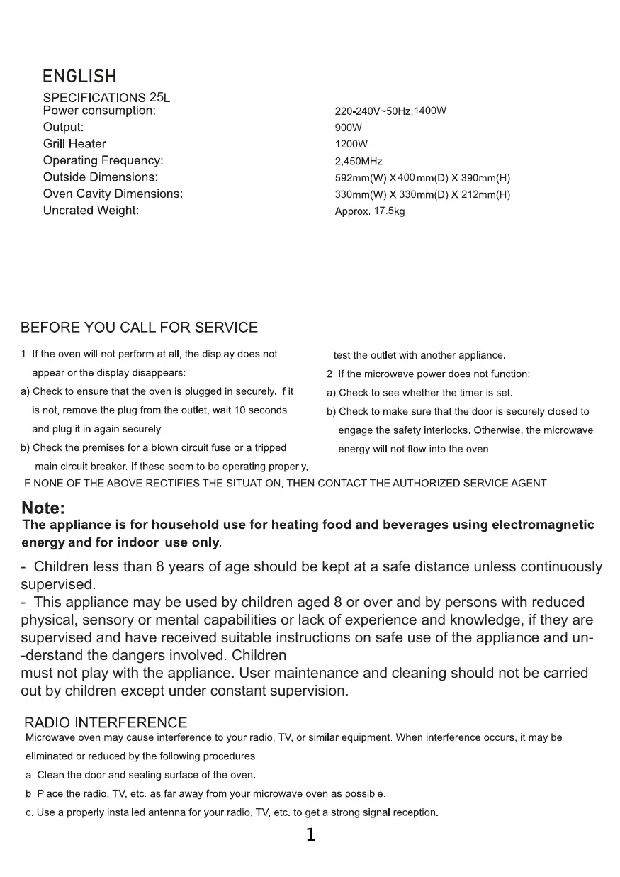 - ATTENTION: Lorsque l'appareil fonctionne en mode combiné, ne pas laisser les enfants l’utiliser sans surveillance, car la température générée sera très élevée.