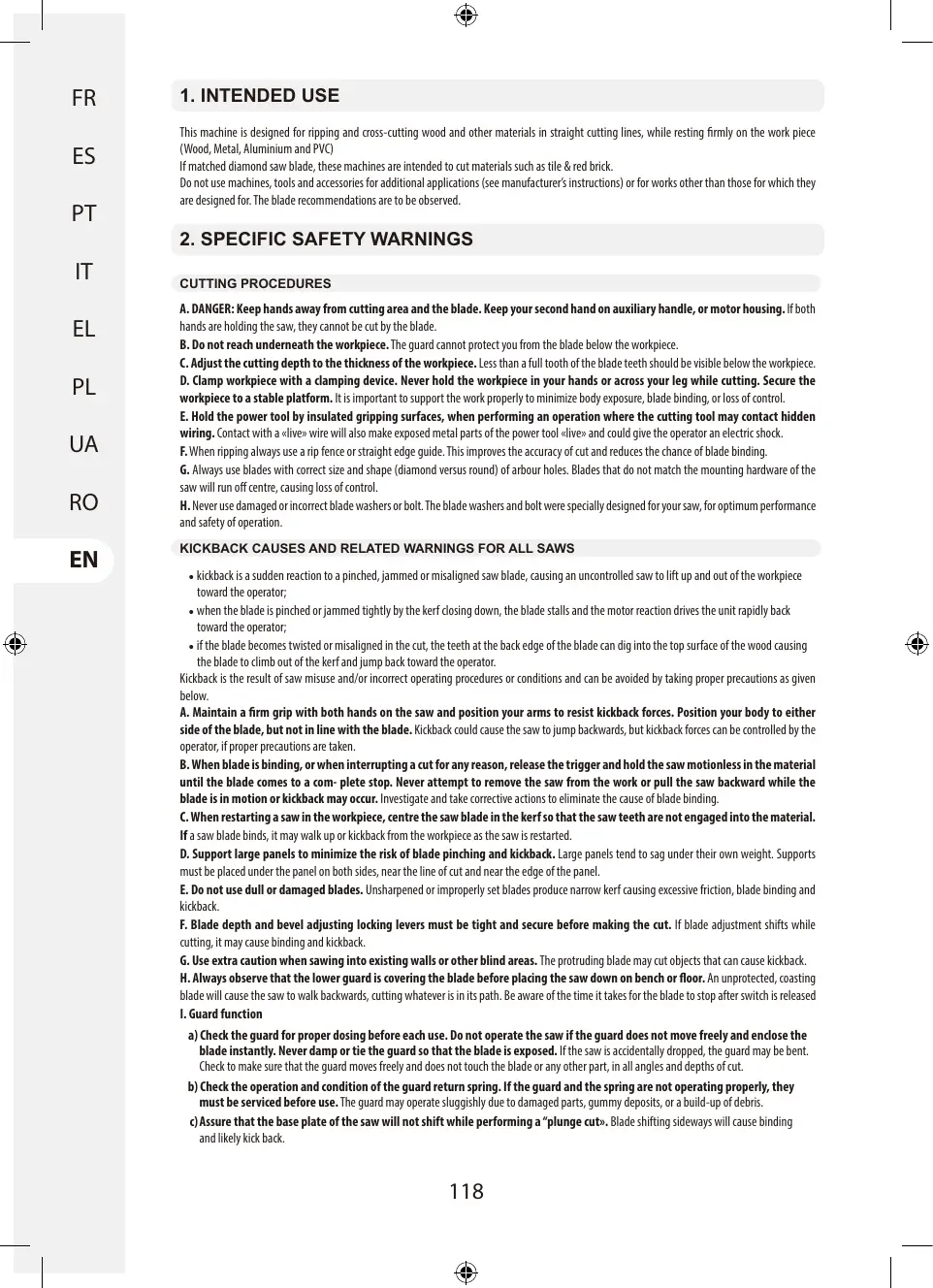 3. AVERTISSEMENTS DE SÉCURITÉ SUPPLÉMENTAIRES AVERTISSEMENTS DE SÉCURITÉ POUR LES MACHINES À TRONÇONNER