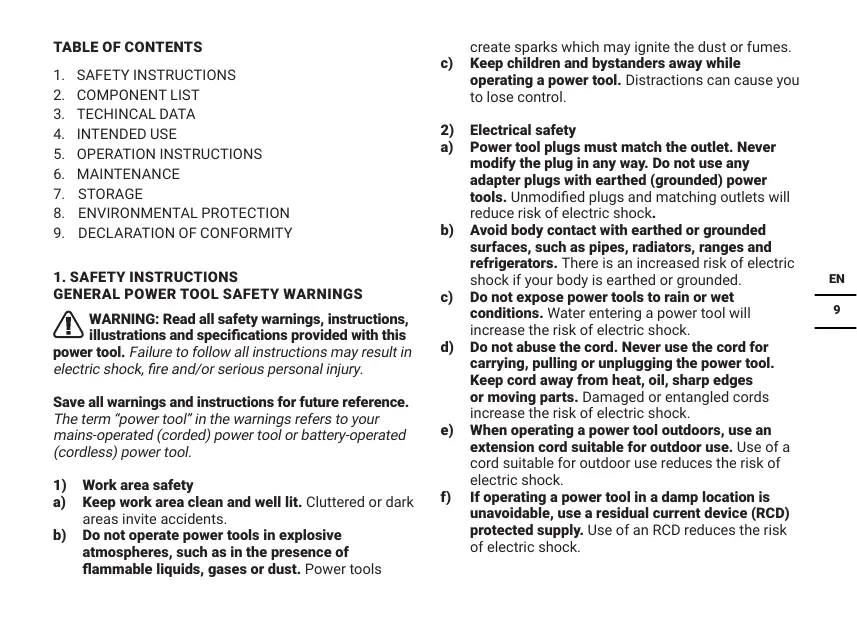 6. ENTRETIEN AVERTISSEMENT : Lorsque vous devez entreprendre des travaux d'inspection, d'entretien et de nettoyage, assurez-vous que le produit a été éteint, qu'il a refroidi et que le bloc-batteries a été retiré.