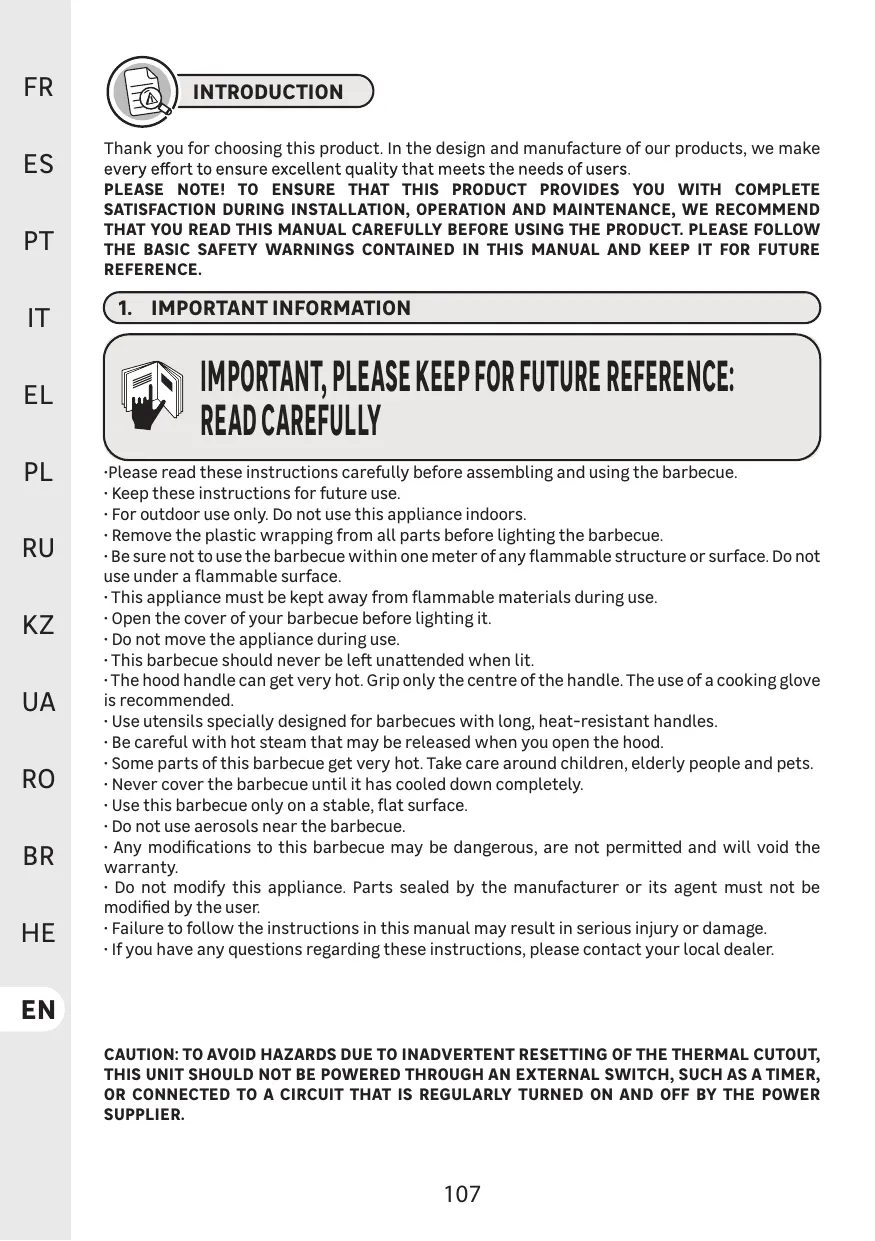 -Please read these instructions carefully before assembling and using the barbecue. Keep these instructions for future use.