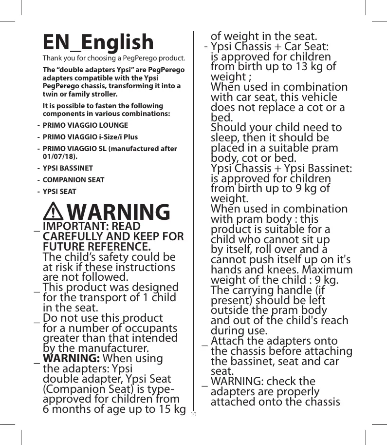 Double adapters Ypsi/Z4 - Poussettes PEG PEREGO - Free user manual and instructions