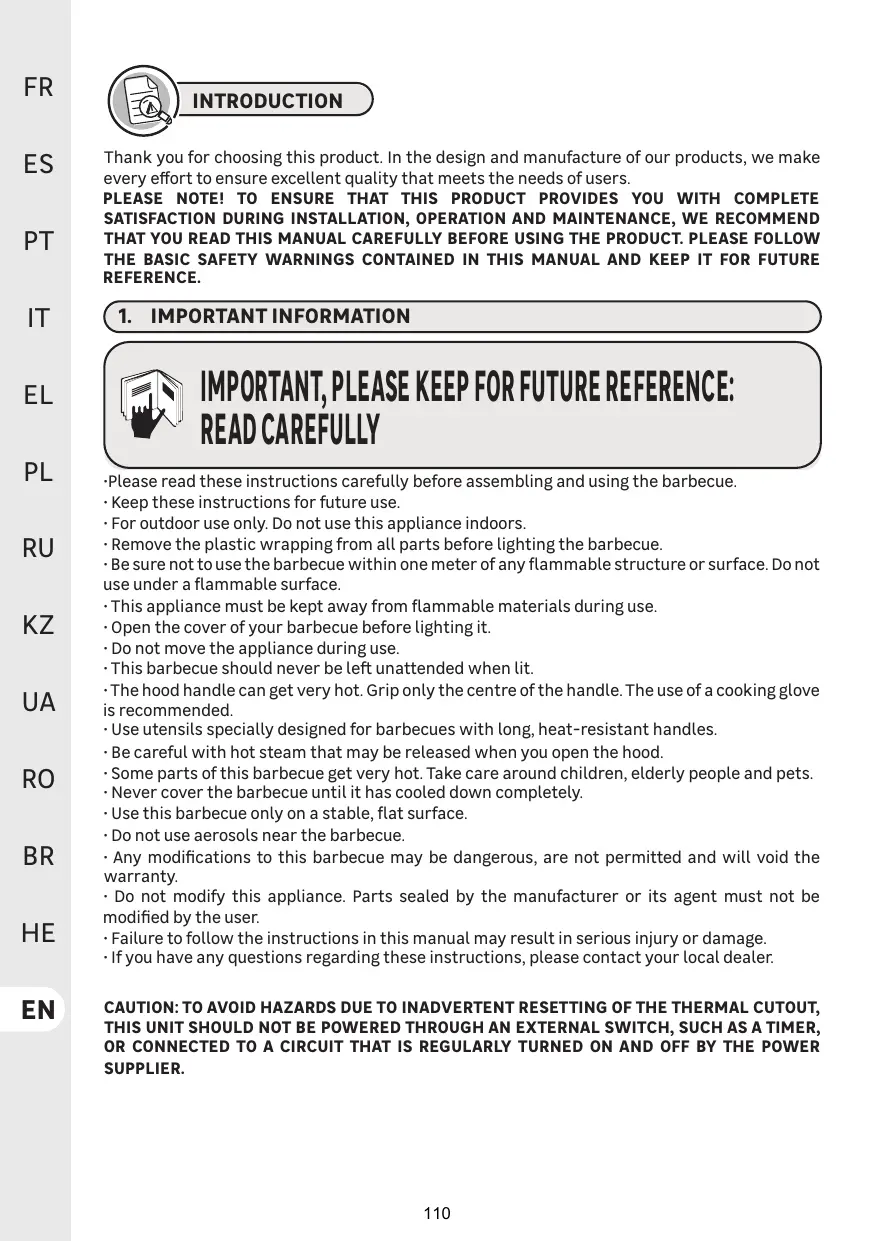- Certaines parties de ce barbecue deviennent très chaudes. Prenez soin en présence d'enfants, de personnes âgées et d'animaux.