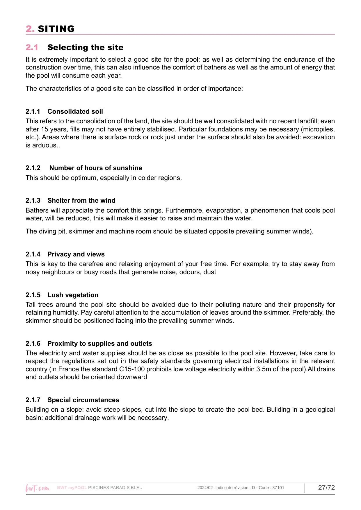 PISCINES PARADIS BLEU 2024/02- Indice de révision : D - Code : 37101 21/72