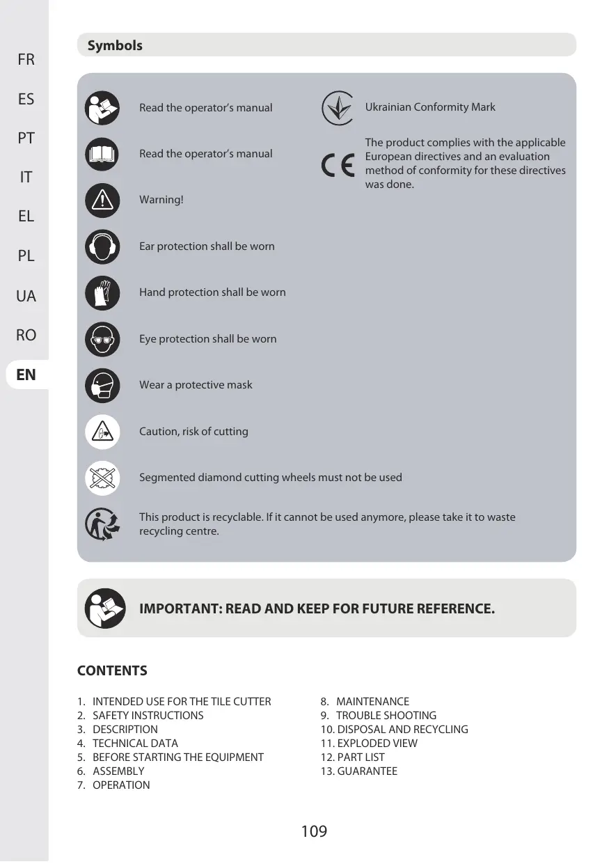 Download the instructions for your Coupe-carreaux in PDF format for free! Find your manual 450ETC1-18031.1 - PRACTYL and take your electronic device back in hand. On this page are published all the documents necessary for the use of your device. 450ETC1-18031.1 by PRACTYL.