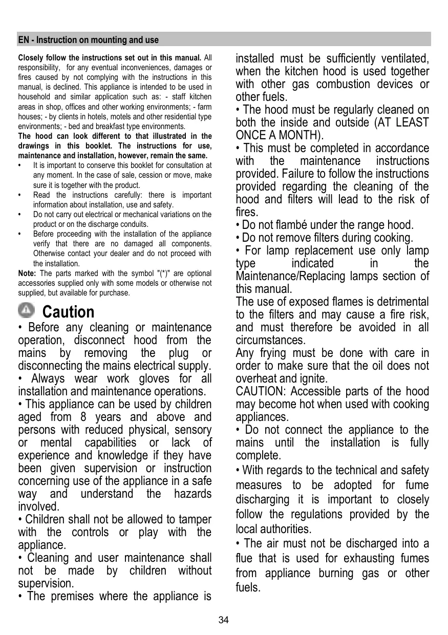 + La hotte ne doit JAMAIS être utilisée comme une surface d'appui, sauf indication expresse.