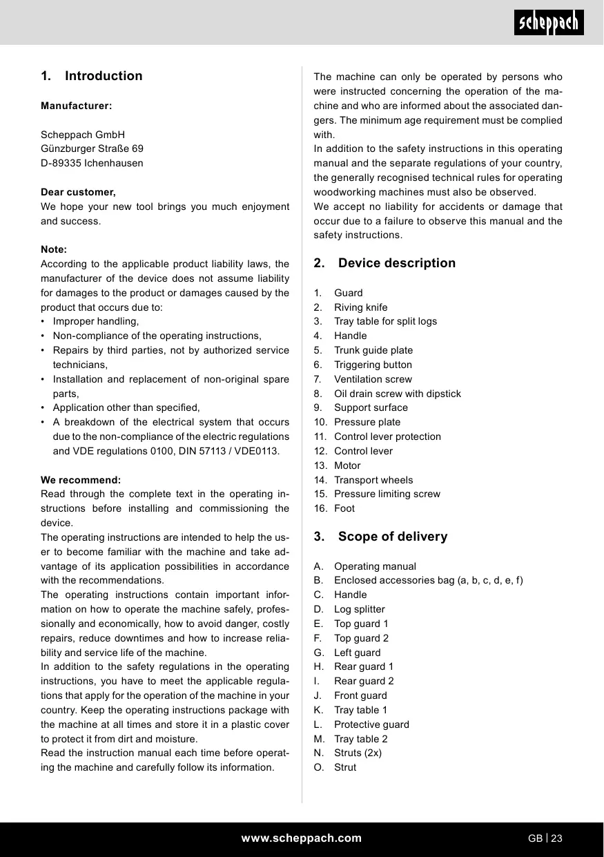 Download the instructions for your Fendeur de bûches in PDF format for free! Find your manual HL760LS - SCHEPPACH and take your electronic device back in hand. On this page are published all the documents necessary for the use of your device. HL760LS by SCHEPPACH.