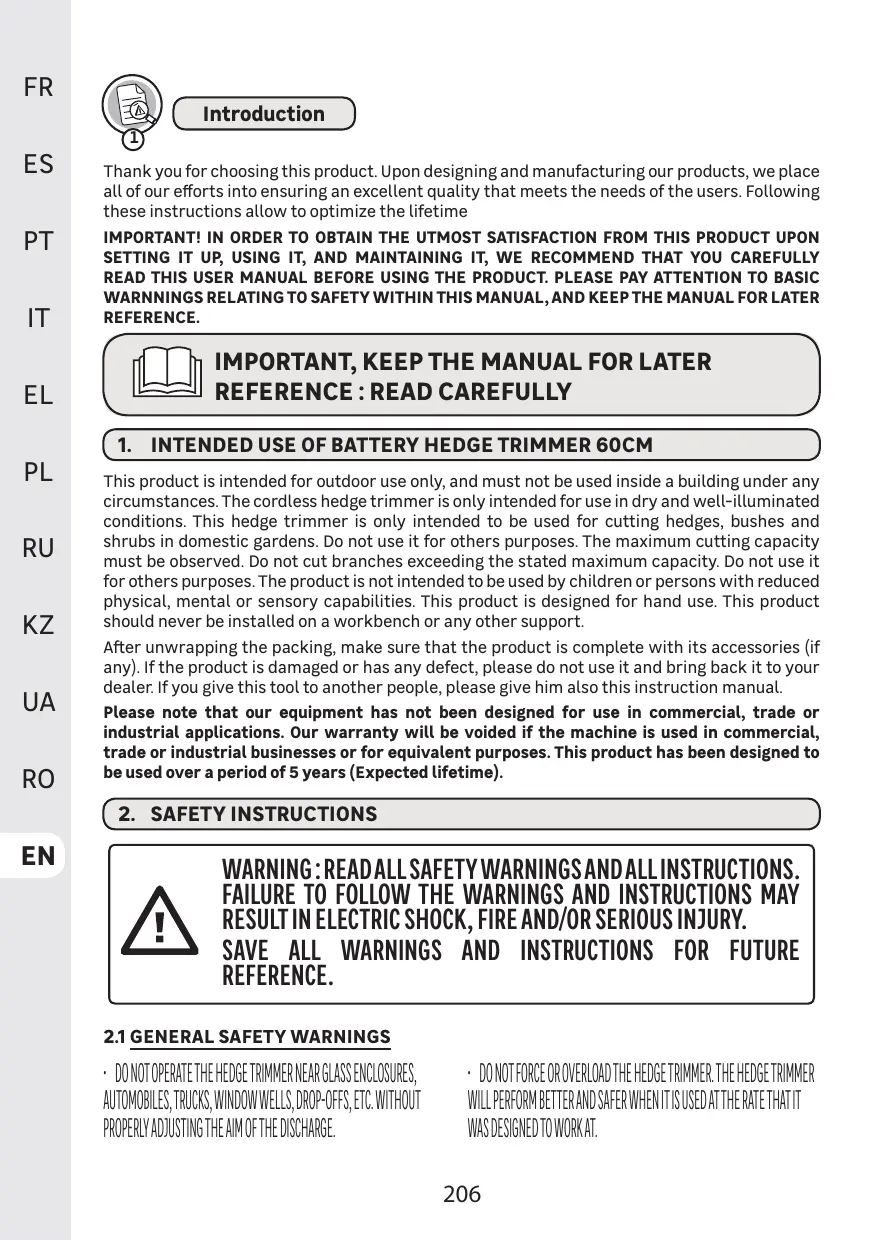 ae UTILISATION PRÉVUE DU TAILLE-HAIE À BATTERIE 60 CM )