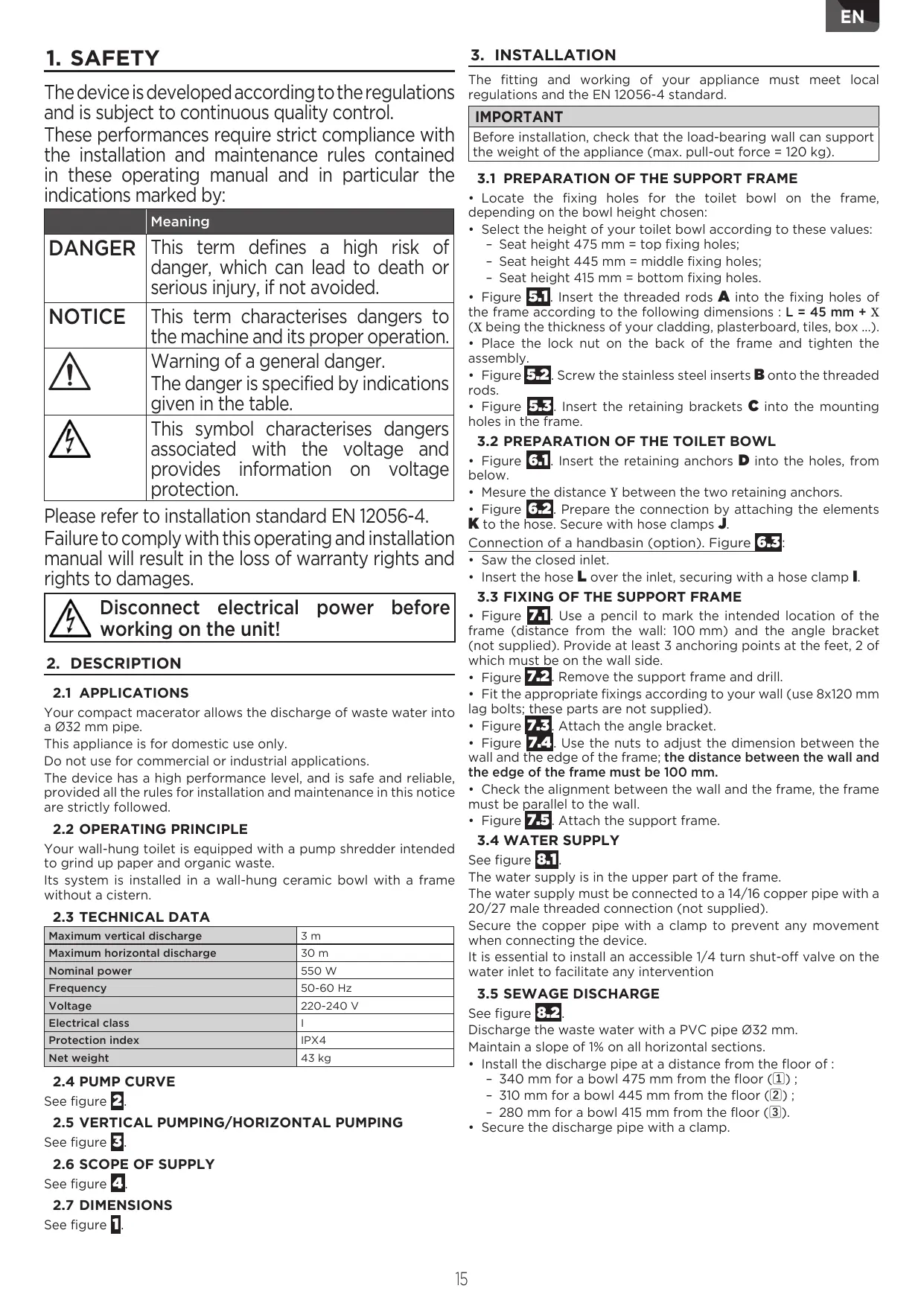 protection. Please refer to installation standard EN 12056-4. Failure to comply with this operating and installation manual will result in the loss of warranty rights and rights to damages.