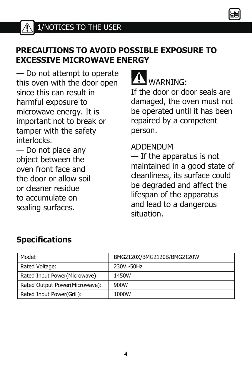 BMG2120X - Micro-ondes BRANDT - Free user manual and instructions