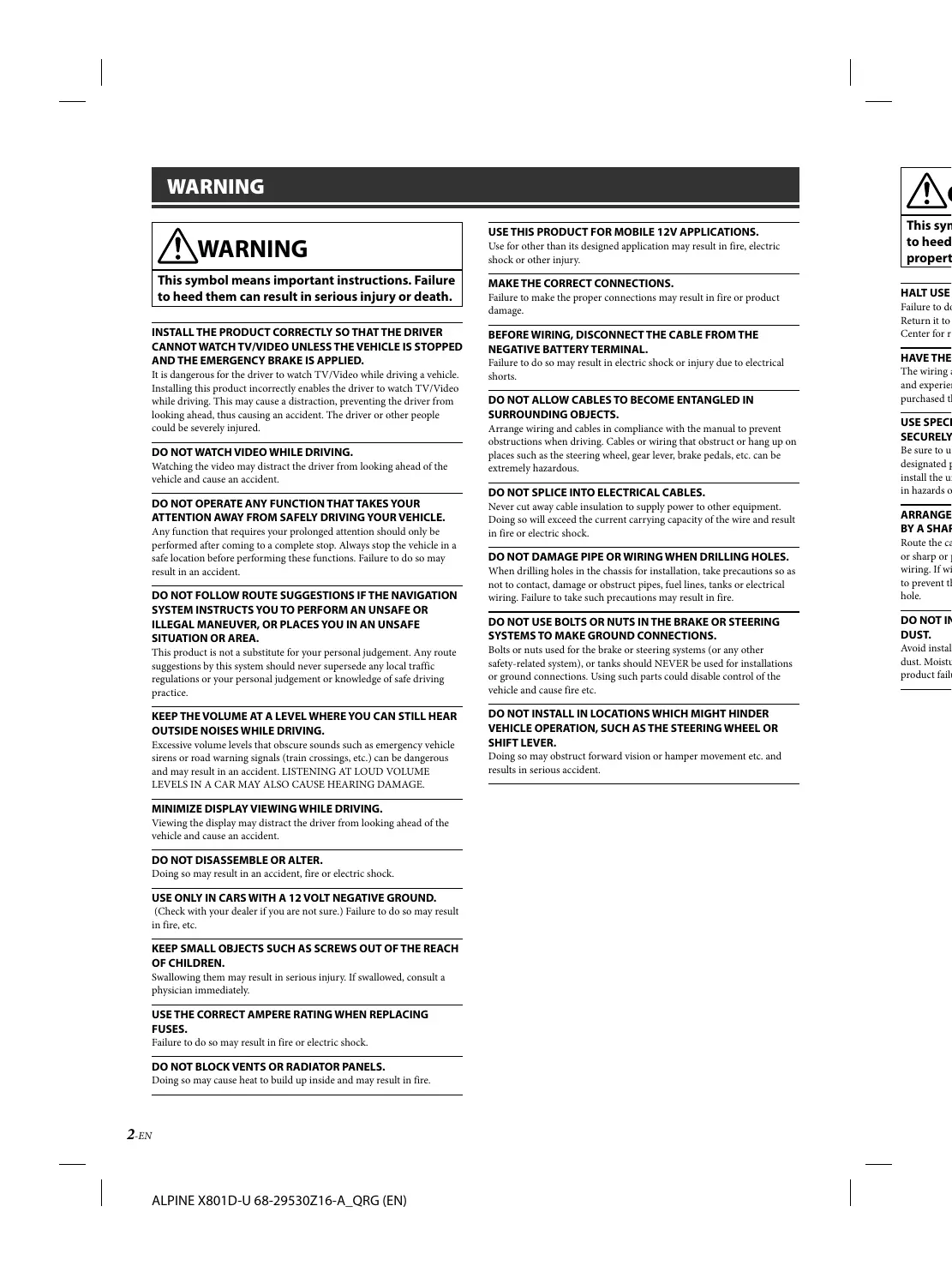 1-EN ALPINE X801D-U 68-29530Z16-A_QRG (EN) WARNING
