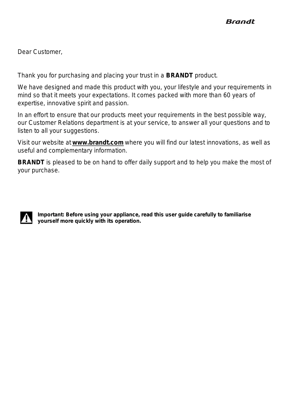 BRANDT est heureux de vous accompagner au quotidien et vous souhaite de profiter pleinement de votre achat.