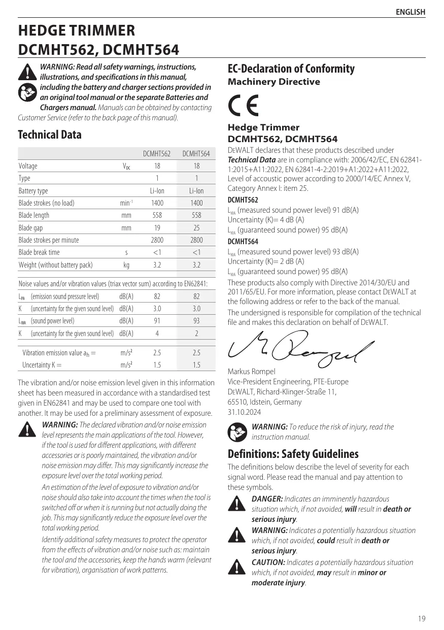 DCMHT562 - DCMHT564 - Taille-haies DEWALT - Free user manual and instructions