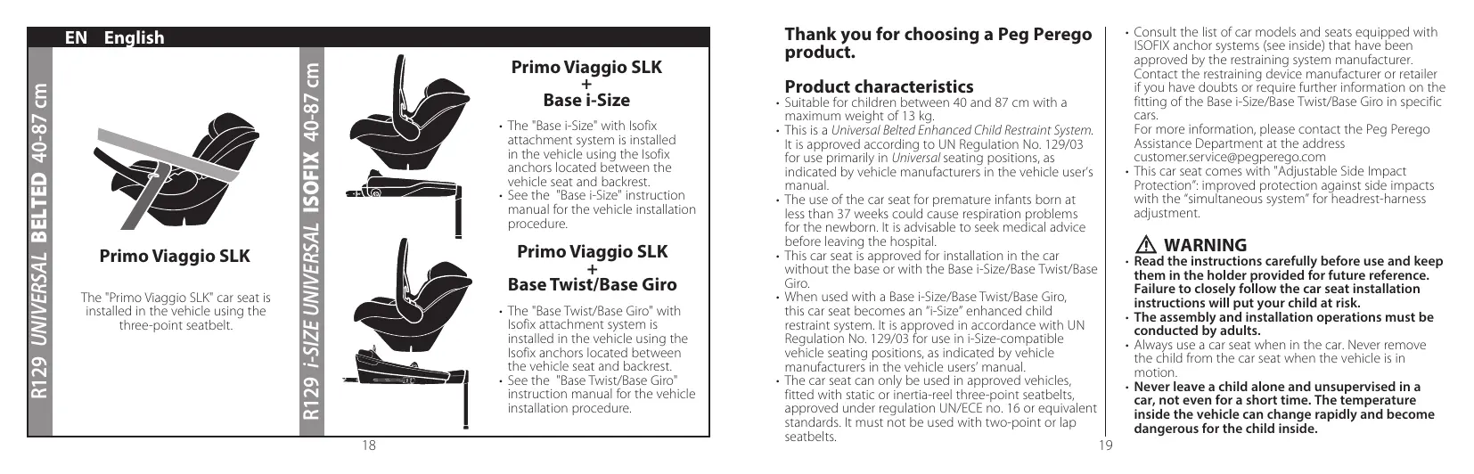 Primo Viaggio SLK - Car seat PEG PEREGO - Free user manual and instructions