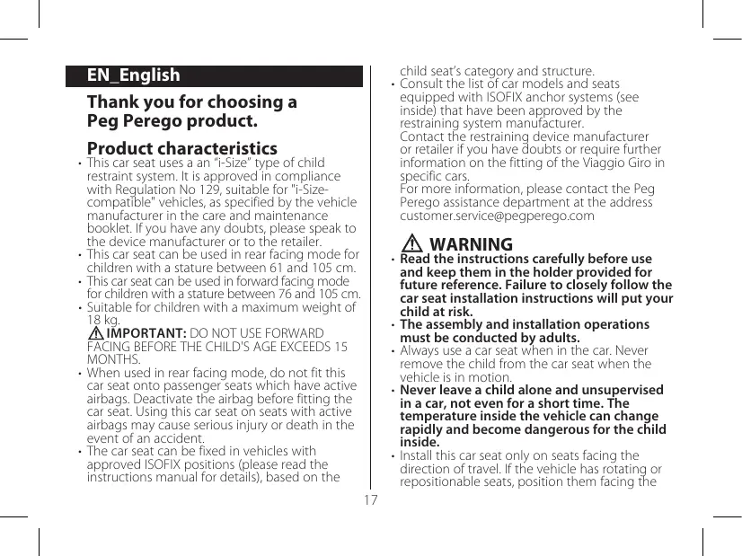 Viaggio Giro - Car seat PEG PEREGO - Free user manual and instructions
