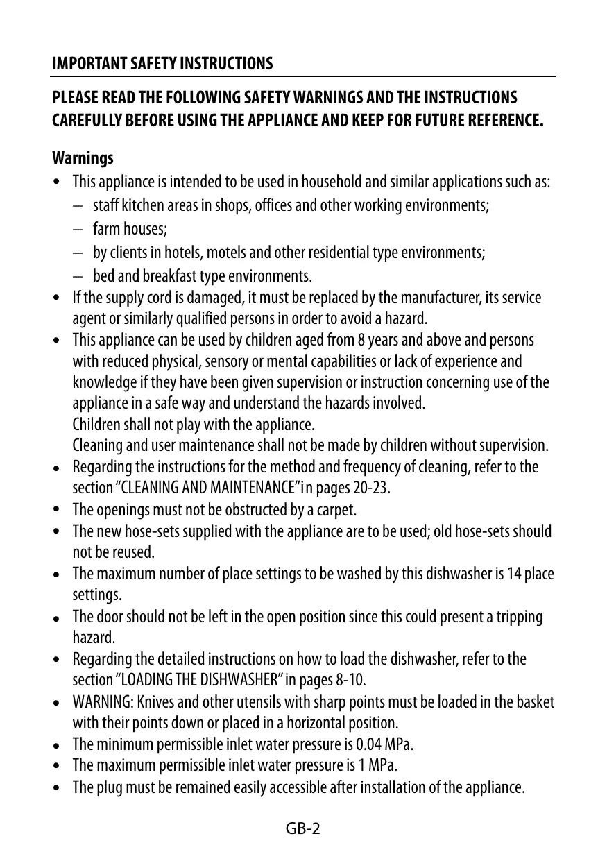 + Regarding the detailed instructions on how to load the dishwasher, refer to the section “LOADING THE DISHWASHER” in pages 8-10.