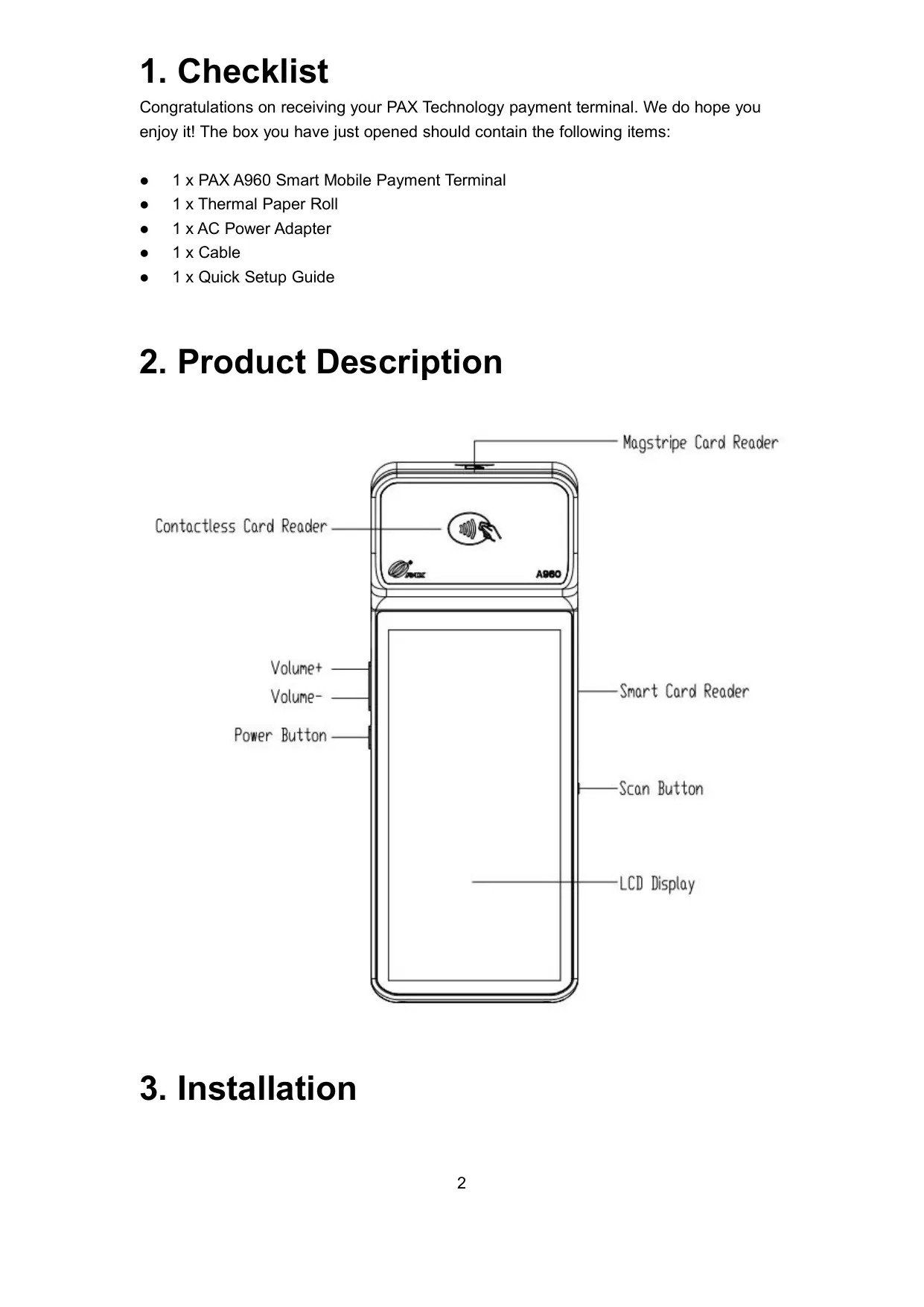 USER MANUAL A960 PAX Technology