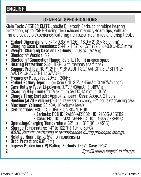 Download the instructions for your Headphones in PDF format for free! Find your manual AESEB2 - Klein Tools and take your electronic device back in hand. On this page are published all the documents necessary for the use of your device. AESEB2 by Klein Tools.