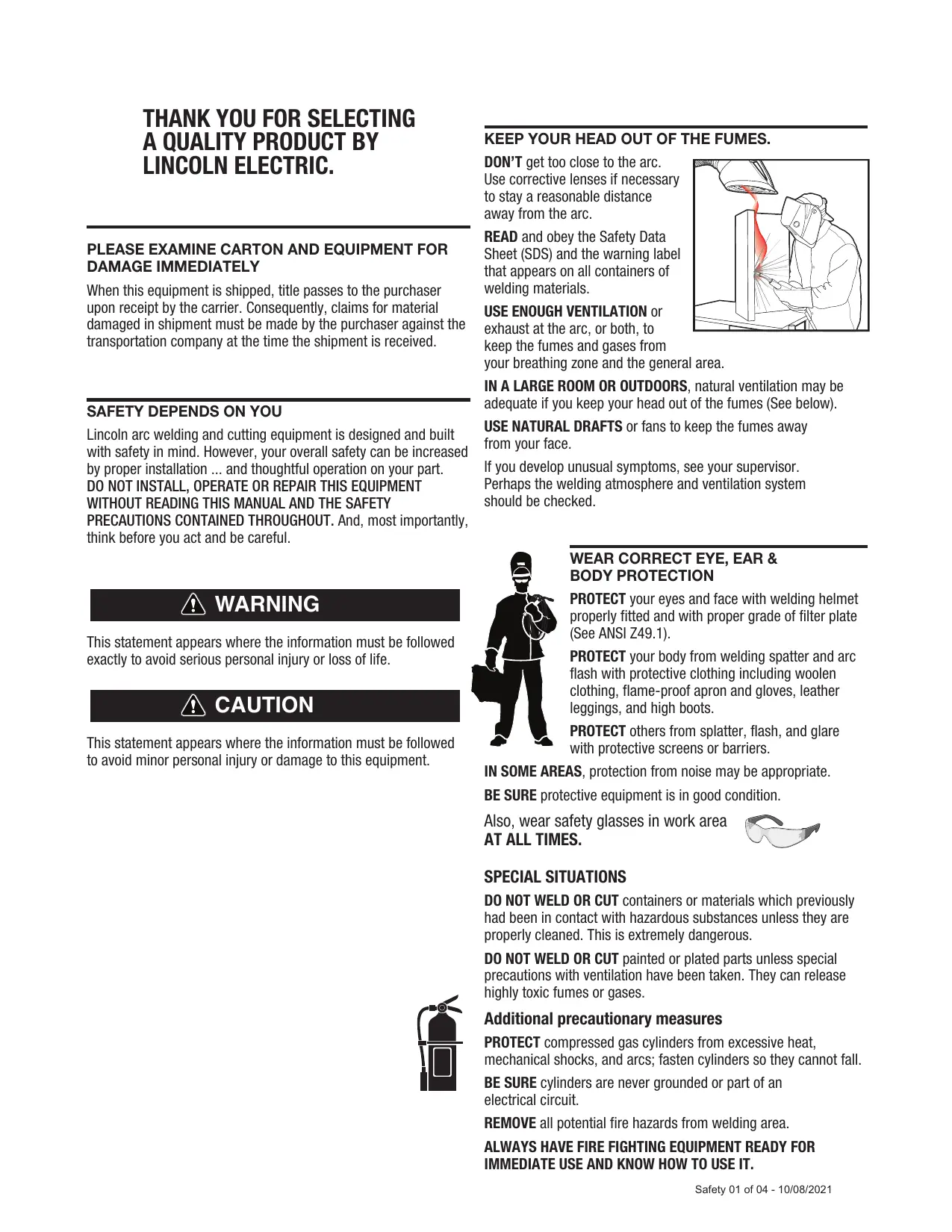 Consultez http:/www.lincolnelectric.com/safety pour des consignes de sécurité supplémentaires.