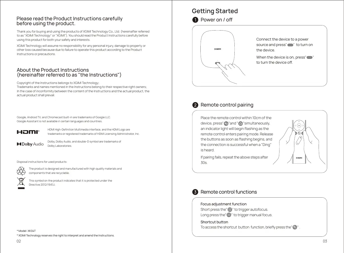 + Nessayez pas de démonter et d'assembler l'appareil vous-même. Veuillez contacter le senice aprês-vente de XGIM. en cas de problème.