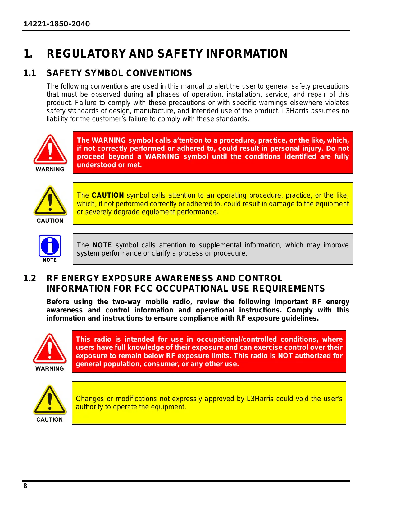 WARNING Changes or modifications not expressly approved by L3Harris could void the user's authority to operate the equipment. —>