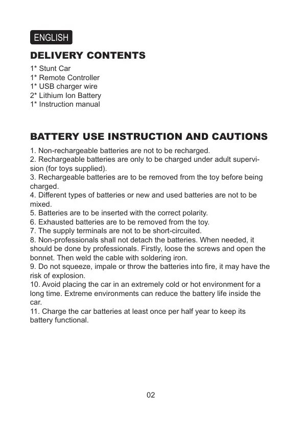 2. Rechargeable batteries are only to be charged under adult supervi- Sion (for toys supplied)