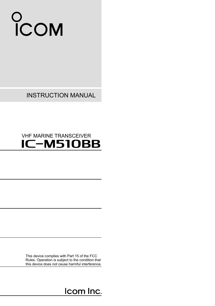 Download the instructions for your Transceiver marine in PDF format for free! Find your manual M510BB - ICOM and take your electronic device back in hand. On this page are published all the documents necessary for the use of your device. M510BB by ICOM.
