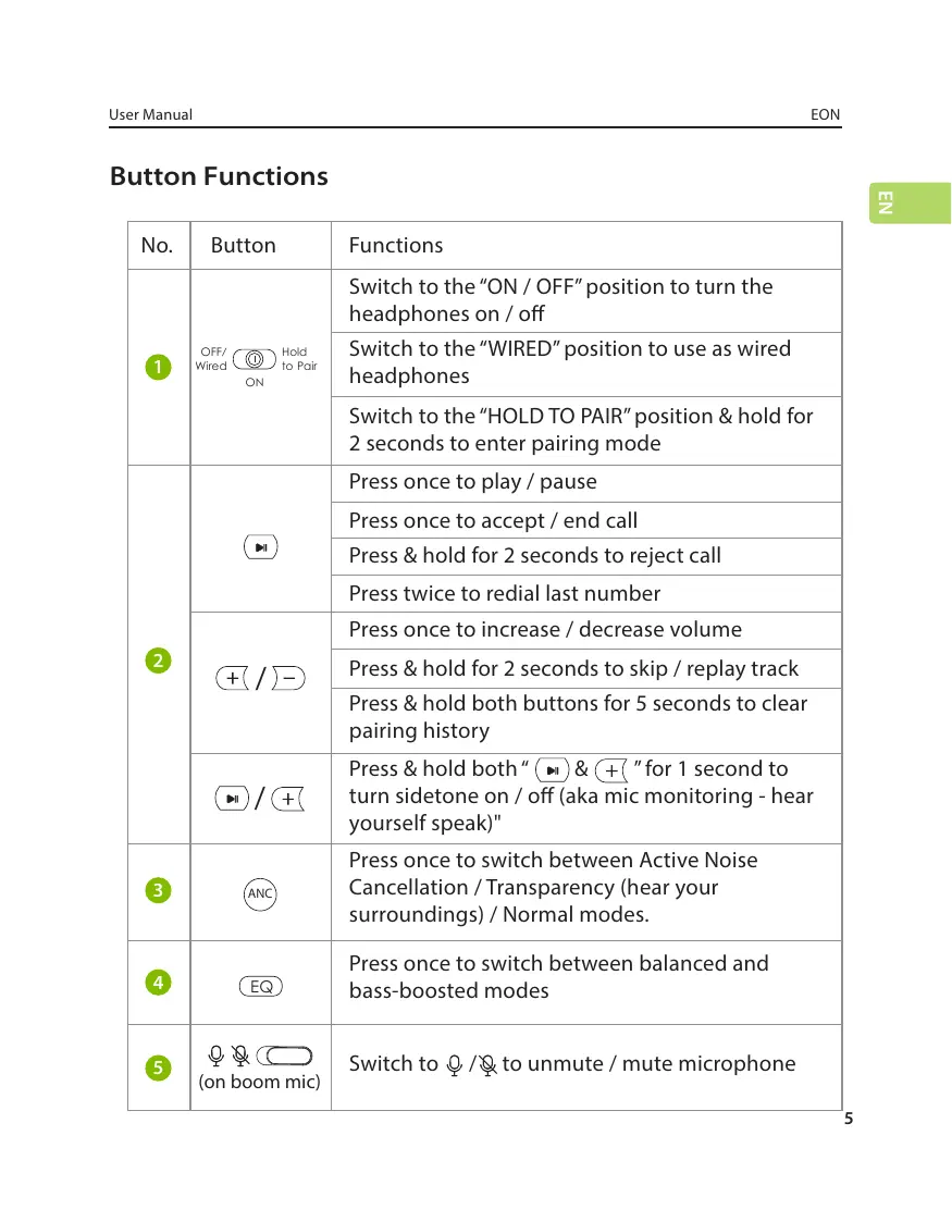 NOTE: En connexion filaire, les modes ANC, transparence, normal et autres boutons inté- grés ne fonctionnent pas. En revanche, le bouton du le micro-perche fonctionnera.