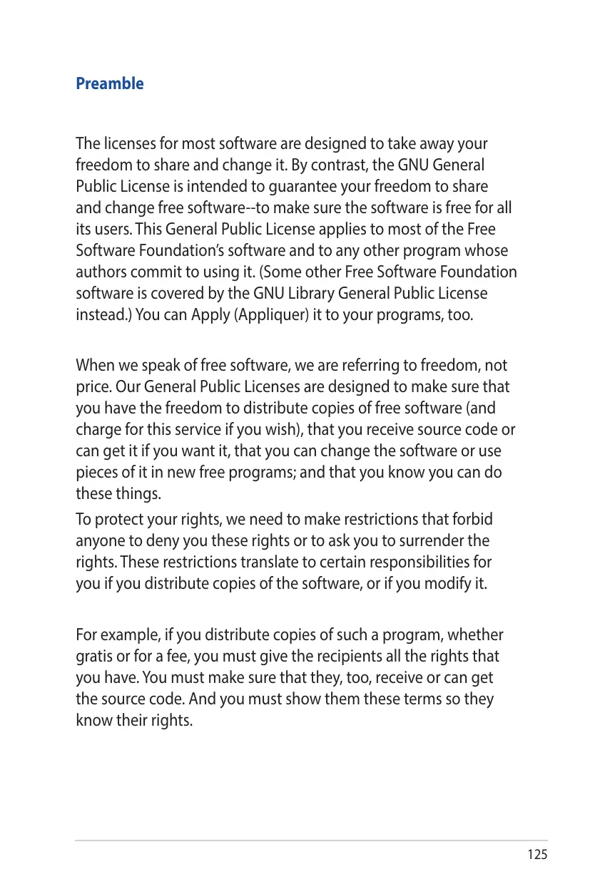 Preamble The licenses for most software are designed to take away your freedom to share and change it. By contrast, the GNU General Public License is intended to guarantee your freedom to share and change free software--to make sure the software is free for all its users. This General Public License applies to most of the Free Software Foundation’s software and to any other program whose authors commit to using it. (Some other Free Software Foundation software is covered by the GNU Library General Public License instead.) You can Apply (Appliquer) it to your programs, too. When we speak of free software, we are referring to freedom, not price. Our General Public Licenses are designed to make sure that you have the freedom to distribute copies of free software (and charge for this service if you wish), that you receive source code or can get it if you want it, that you can change the software or use pieces of it in new free programs; and that you know you can do these things. To protect your rights, we need to make restrictions that forbid anyone to deny you these rights or to ask you to surrender the rights. These restrictions translate to certain responsibilities for you if you distribute copies of the software, or if you modify it. For example, if you distribute copies of such a program, whether gratis or for a fee, you must give the recipients all the rights that you have. You must make sure that they, too, receive or can get the source code. And you must show them these terms so they know their rights.