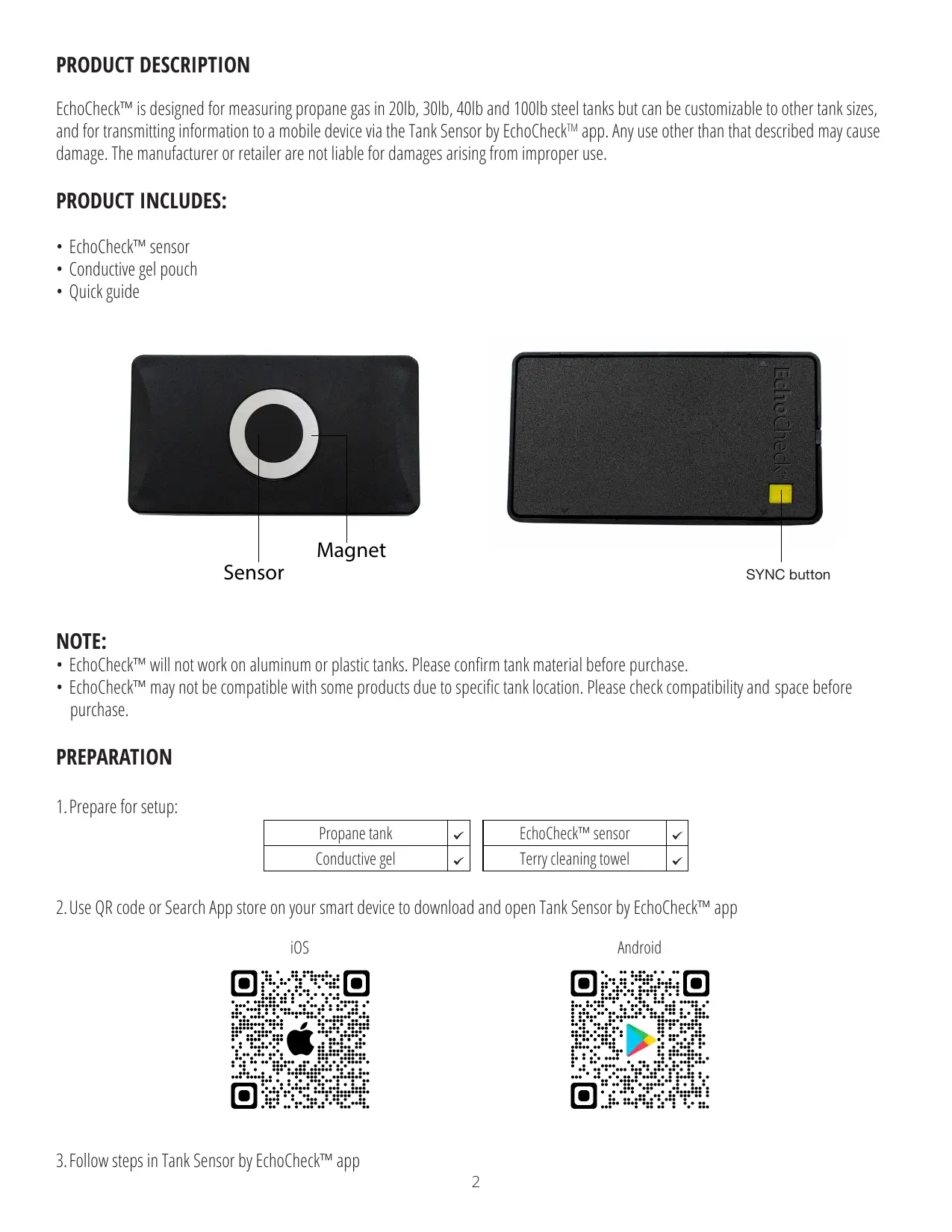 Pour là connectivité et la configuration, veuillez vous référer aux sections appropriées de l'application mobile Tank Sensor by EchoCheck".