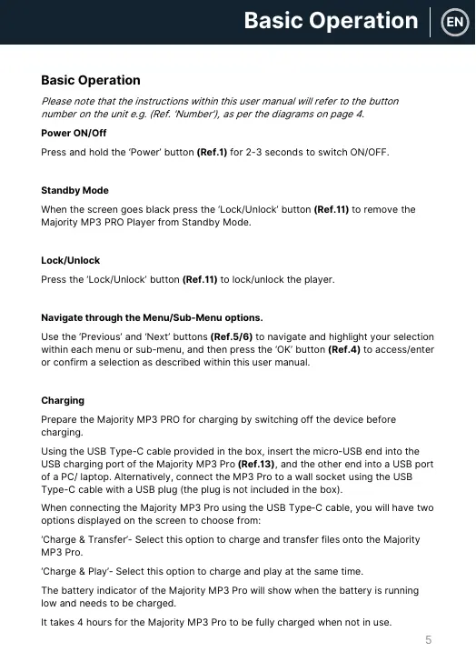 Préparez le Majority MP3 PRO pour la charge en éteignant l'appareil avant de le charger.