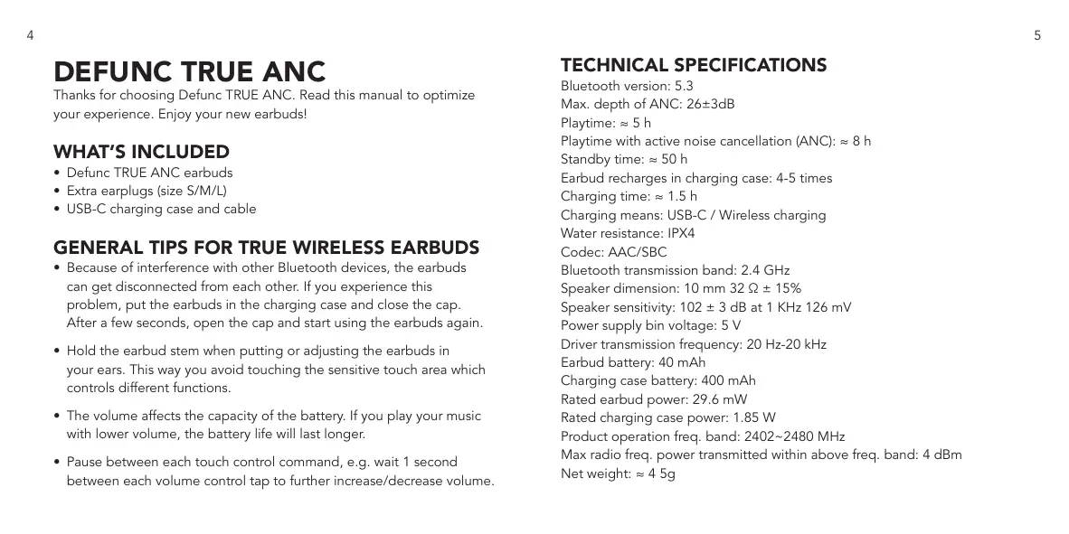 TRUE ANC - Headphones Defunc - Free user manual and instructions